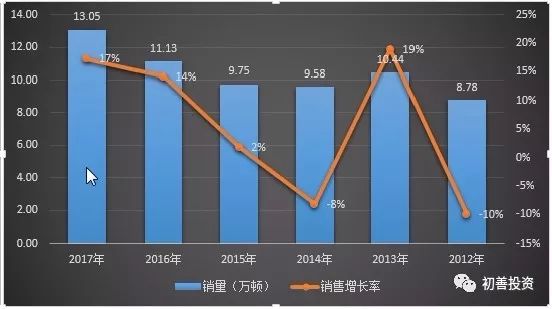 (2)笔者从量价的角度分析公司收入增长的驱动因素,销量从2012年的8.78万吨增长至2017年的13.05万吨,年复合增长率为7%。近三年成加速增长态势。如图2-19所示。