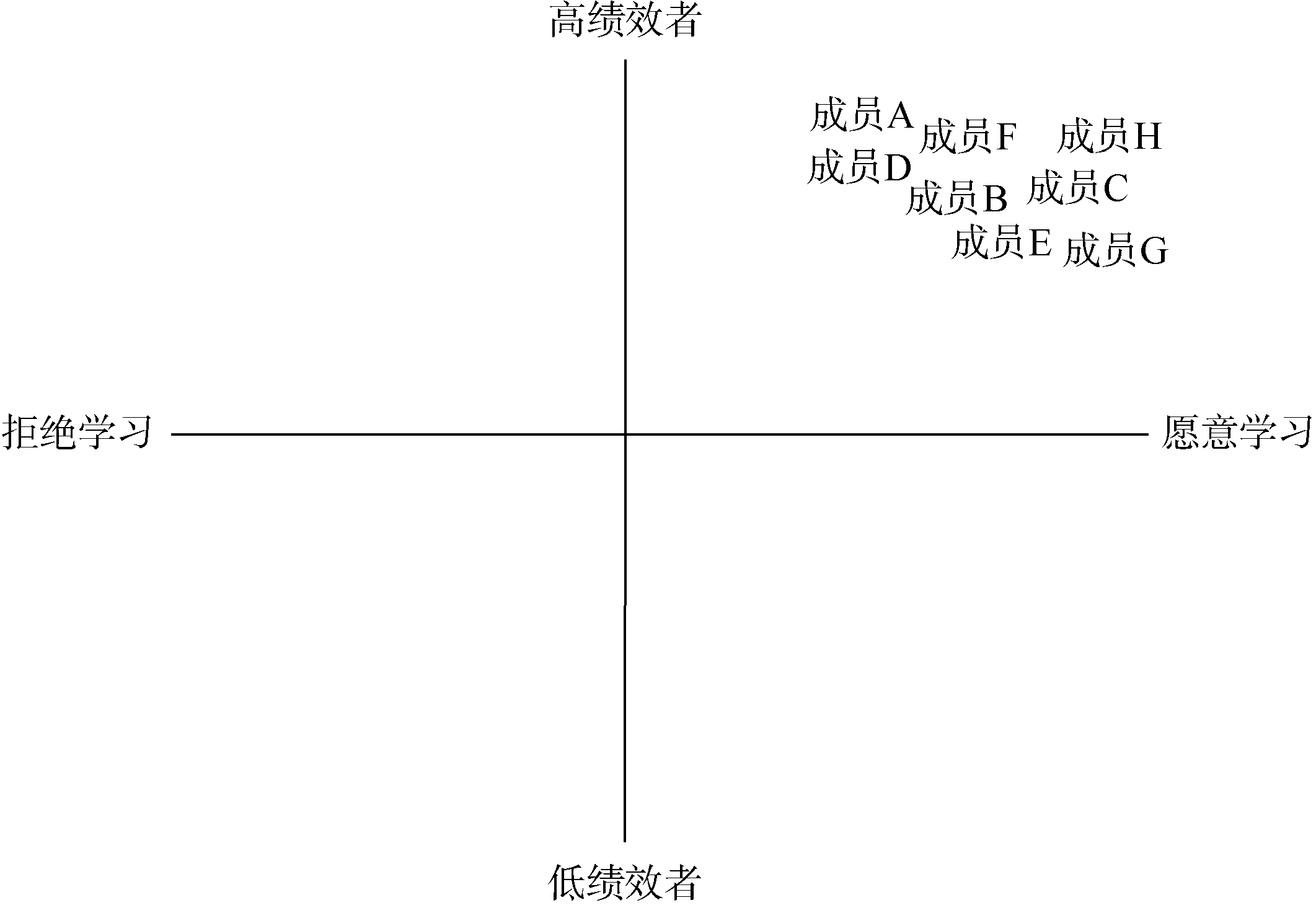 学习-绩效模型的应用,首先是了解团队起点,即看看每个人在模型里的位置,如图 3-2 所示。