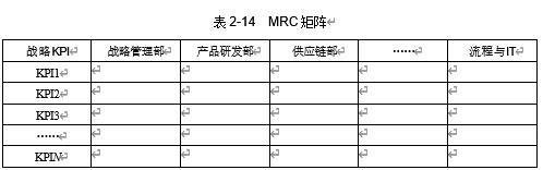 (1) MRC 矩阵由战略管理部门或质量运营管理部门主导,绩效管理部门协同参与,通过征求相关业务部门负责人意见,经多方达成共识后输出,如表 2-14所示。