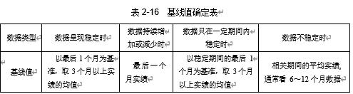 (14) 基线。需明确基线值的确定规则,在前面“指标目标确定”部分已经明确过取值的方法,参照表 2-16 执行即可。