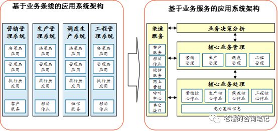 基于对行业业务的理解,客户与咨询实施商讨论后共同认为,业务中相对稳定不变的是基层/操作层业务,例如计算电费、检修作业、工作票、采购订单等,而容易变化的是管理流程性的内容,例如采购审批流程、招标流程等,特别是圈集团集约化的程度在不断变化,共享型的业务不断的从县供电局集中到地区供电局再到省公司,因此,应用系统架构的策略应该首先固化基本稳定的操作层业务,然后将易变的管理业务抽象为灵活组装的SOA服务,形成前端组合业务功能,并通过工作流引擎驱动。这其实有点像现在流行的“稳敏双态”架构。