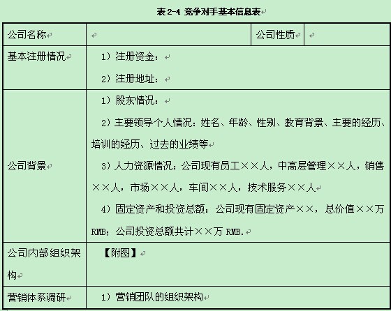 第一,      竞争对手基本信息表:作为一项基础工作,可以委派专人进行信息搜索