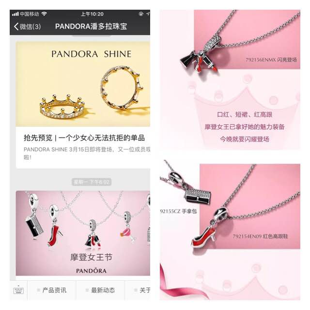 潘多拉的女王系列产品告诉你,佩戴这些产品才有女王范。口红、短裙、红高跟鞋、手包、红酒杯一起搭配,就是摩登女王。消费者调侃:一如潘门深似海,一颗一颗接着买,女王系列更要买。