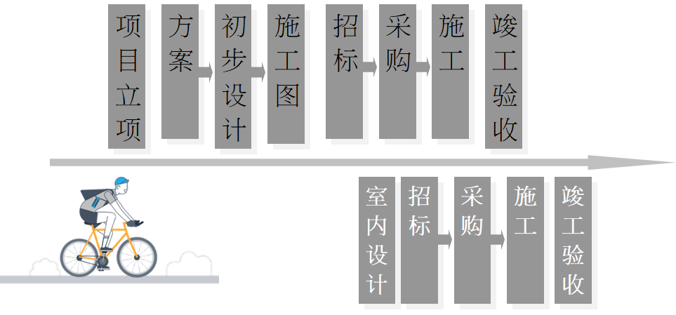 第三,项目建设基本程序。从项目立项、方案、初步设计、施工招标、材料设备采购、施工、竣工验收,有固定完整的流程(如图1所示),并且一个大项目的采购从立项到最后招标采购可能会持续几年时间。材料设备供应商的销售人员也需要耗费大量的时间,一步一步往前推进,介入项目太早,销售人员花费大量的时间、金钱和机会成本,还不一定成功;而介入太晚,又有可能成为备胎和炮灰,太多的变数给销售人员带来的是挑战也是机会。