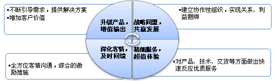 总之,工业品行业是典型的大客户驱动的营销模式升级行业,在工业品行业的营销已经进入了“价值为王”的“品位”时代,客户不再单纯地关注价格与最低成本,而是强调“持续性的价值”、“经营的价值”、“系统的价值”、“最大化的价值”。谁更快地改变传统模式的思维方式,改变纯粹的关系营销,深刻洞察企业客户价值的内涵,将服务和产品形成基于客户价值最大化的一体化系统解决方案,并重视客户关系价值的有效升级,构建强有力的厂商价值一体化工程,以及理性和感性结合的品牌和市场推广策略,谁将获得营销模式的有效升级,从而支持企业的持续发展。