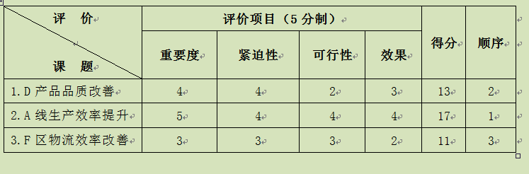 与其选择一些看似很重要但问题模糊不清的课题,倒不如选择一些较小的但是有紧迫性和实际意义的课题。这样做的好处是显而易见的,后者更能取得有效的改善成果,不仅能很好地服务于企业的经营活动,而且能使参与员工体会改善的成就感。