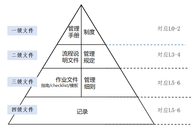 作业文件:针对L4(活动)、L5(任务)制定的作业层文件,是对流程文件的支撑,重点定义活动操作方法、规则等,包括作业指导书、模板、检查表等。