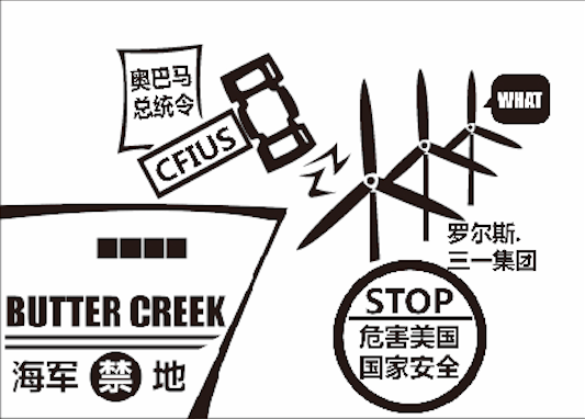2012年4月,罗尔斯公司收购美国Butter Creek风电项目。先后投入了约1300万美元之后,三一突然收到一纸禁令,称其“涉嫌威胁美国国家安全”。如图15-1所示。