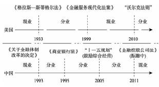 国内外银行业混业经营趋势如图3-6所示,混业经营金融控股模式如图3-7所示。