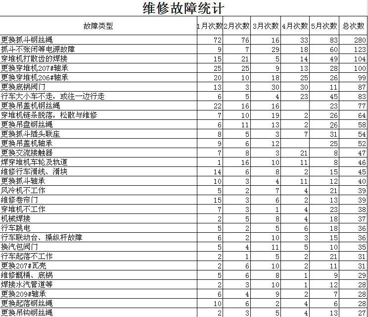 (2)维修故障统计表