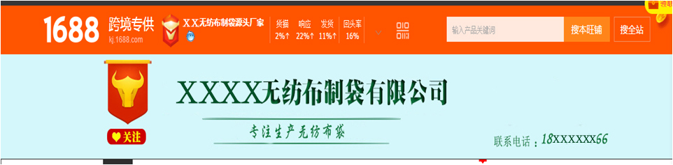 以上两个案例是否符合上述标准?第一个案例,它的市场主要是跨境专供,写的定位文字是:专注生产无纺布袋。这是否是一个正确的定位呢?答案是:NO!第二个案例,一看就知道这家店铺以生产加工为主,并且以背心袋、立体袋、礼品无纺布袋等产品的加工为主。所以这两个都不算标准的定位案例。我们来看看一个常规的标准案例,如图1-2所示。