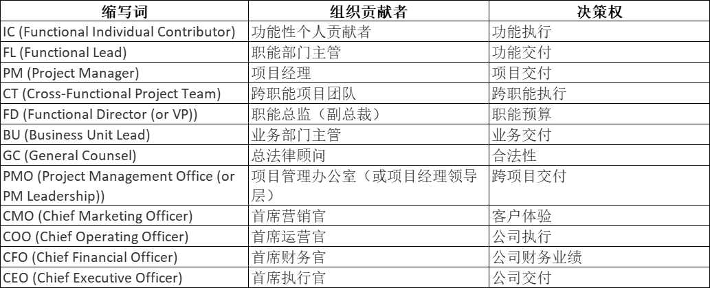右列显示了从个人贡献者到最高管理层的升级路径。