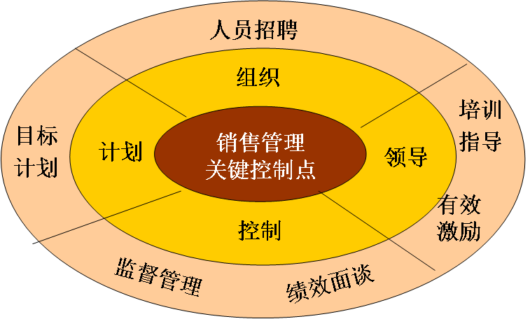销售管理泰斗Robert Calvin (罗伯特·卡尔文?)认为,销售管理应该被看作是一个流程,计划P、组织O、领导D、控制C是一个闭循环,这一流程的各个环节都有影响业绩的关键控制点。它们分别是:P——目标计划,O——人员招聘,D——培训员工、有效激励,C——日常管理、绩效面谈。针对这些关键控制点建立标准化的管理模型、管理工具和方法,使各个环节的运行精细化、规范化、科学化。真正实现销售管理从粗放向精细的转变,将会大幅度提升销售团队的绩效。