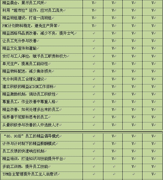 在精益推行的不同阶段,与员工流失相关的精益应对管理亦有选择和侧重地应用,如表4-2所示。