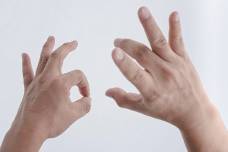 1.将左手拇指与食指轻碰相接,扣成一个圆环;右掌五指松开,拇指放于左扣环旁(图 2-3)。