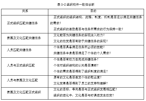正式进入战略执行模块前,对组织一致性进行评价(见表5-2),提前预估未来战略蓝图落地时将会遇到什么问题,以有的放矢进行执行力四要素的匹配和改进。如果诊断结果表明不一致只出在一两个构件上,组织可采取渐进式改变。如果不一致超过三个构件,那就提示企业高层要慎重推行战略规划,如不提前进行重大组织变革,企业战略目标恐难实现。