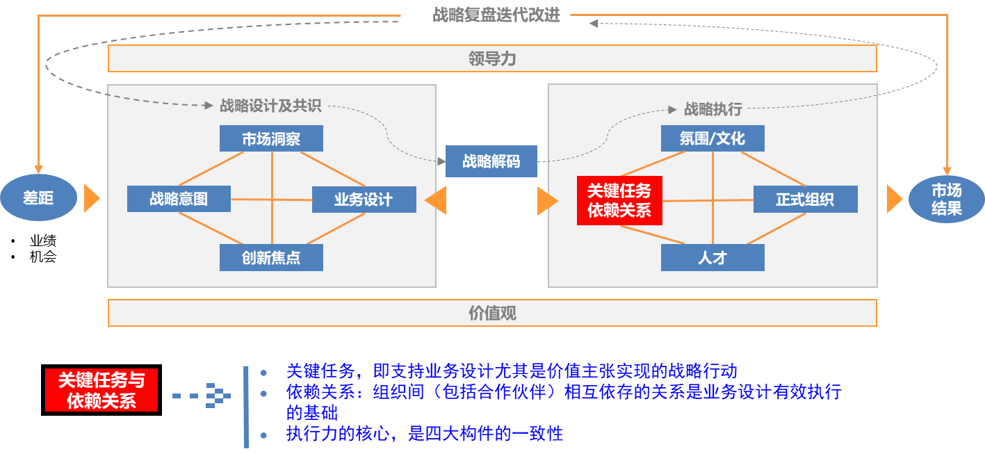 (1)执行是指关键任务,即支持业务设计尤其是价值主张实现的行动方案。