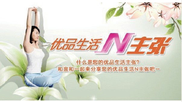 宜和购物从单纯销售终端转化为生活方式的输出者,将宜和购物与目标消费者所向往的生活方式联系起来,从卖产品到卖生活方式。以抢先定位策略,确定宜和购物独特的品牌定位,在消费者心目中直接的品牌联想是“宜和购物 = 优品生活家”。
