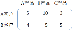 现有两个客户分别是A、B,有三个产品分别是A、B、C,有两项作业分别是A、B。
