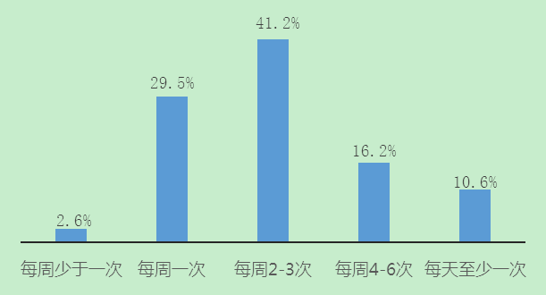 受访人群中,每周至少2次以上的外出就餐频次占比高达68%,超过一半以上(55.6%)集中在周末消费,如图1-2所示。