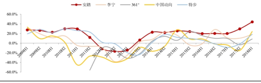 我们可以清楚地看到,2011年鞋服行业进入低谷期,国产鞋服行业收益大幅度下降。在2014年46号文件的春风下,体育产业正朝着2025年5万亿元的产值进发。站在体育产业和消费升级潮水交汇处,国内体育用品市场迎来了本土体育用品发展的黄金时期,整体趋势在2014年开始向好的方向发展。值得注意的是,安踏在2013年初期开始逆转,在收益短暂下降后迅速上升、持续增长。另外,行业内品牌集中度越来越向TOP3(NIKE、adidas、安踏)集中,安踏成为全球体育top3唯一一家国产品牌,市场份额一跃而上,从行业中脱颖而出,成为国内体育企业的标杆。