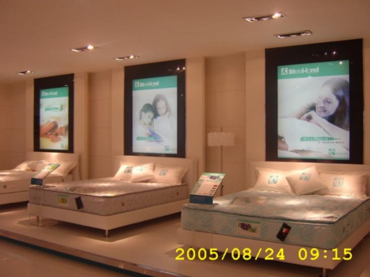 最终斯帝罗兰选择通过灯箱来营造终端形象,每个床垫产品都有与之相对应的、符合消费群定位的灯箱,从而与竞争对手形成鲜明的差异化。