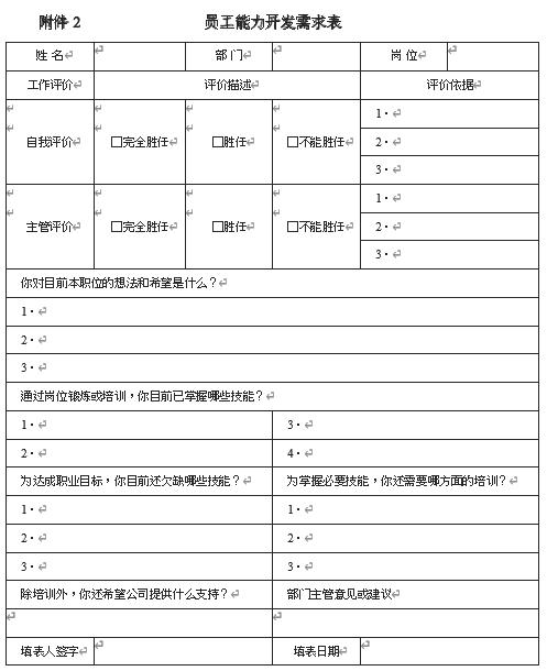 一方面,通过绩效管理机制,直接主管在对下属员工进行绩效考核过程中,及时发现员工在知识和技能方面的不足,将其纳入培训提升计划;另一方面,对比本岗位与上一级岗位在知识和技能上的差距,为员工晋升提前制订培训计划。