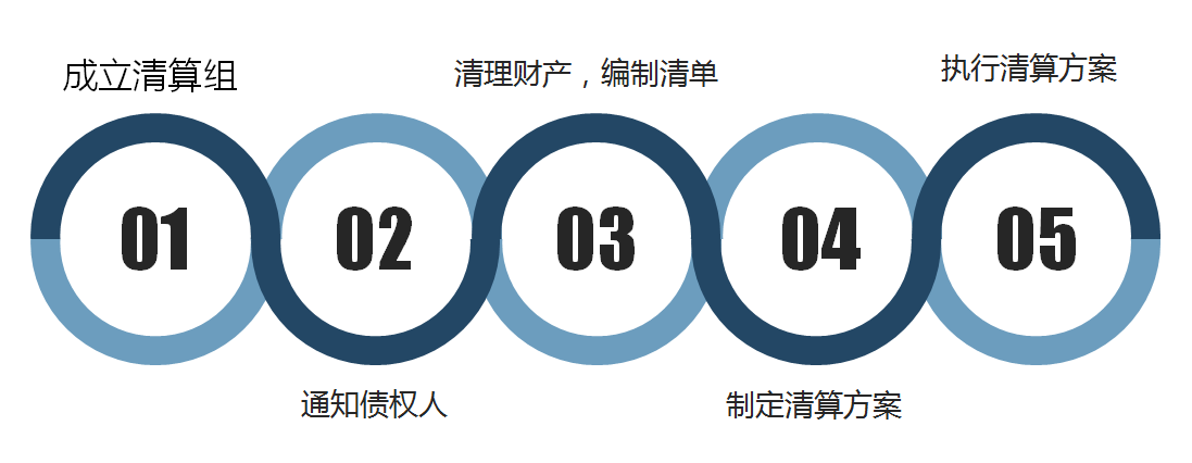 根据公司法的规定,清算流程大致有以下五步:
