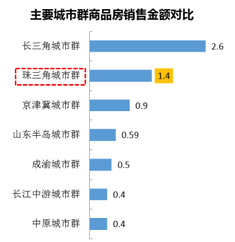 而从商品房销售金额对比来看,珠三角城市群商品房销售金额仅次于长三角城市群,房地产市场。比较成熟
