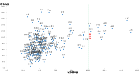 对于房地产企业而言,进行城市房地产投资的首位要素是考虑投资的安全性,把控好投资风险。如何使城市发展和房地产市场发展适配均衡是投资安全的重要考量指标。通过构建城市发展与房地产市场热度的均衡线,可以看出距离均衡线越近,则城市房地产投资越安全,距离均衡线越远,则城市房地产投资风险越大。