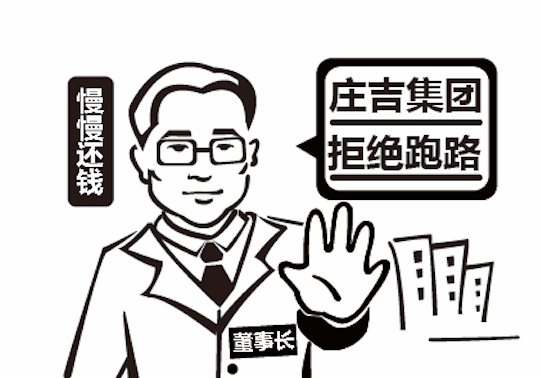 2015年年底,庄吉集团掌门郑元忠曾公开表示:“不跑路,欠钱慢慢还!”笔者也在微信里看到许多文章对“不跑路的庄吉”给予了正面评价,这一言论一度成为“正能量”被广泛转发。但是,庄吉集团最终还是陷入了破产的深渊。如图2-3所示。