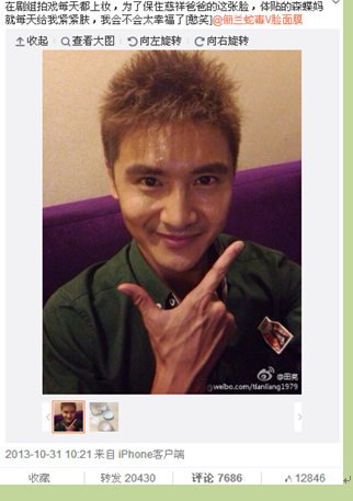 (1) 紧跟热点,大胆出手。在热门综艺节目《爸爸去哪儿》第一季刚播出不久,5个爸爸还不是很火时,我们迅速抓住这个机会,同时签约5个爸爸在微博全力推荐俪兰产品,迅速扩大俪兰的知名(如图18-1所示)。而如果选择在几个月后节目火了以后,签约他们的成本将是10倍以上。