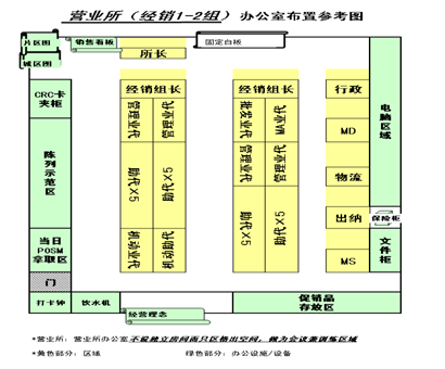 图10-6 营业所(经销1~2组)办公室布置参考图