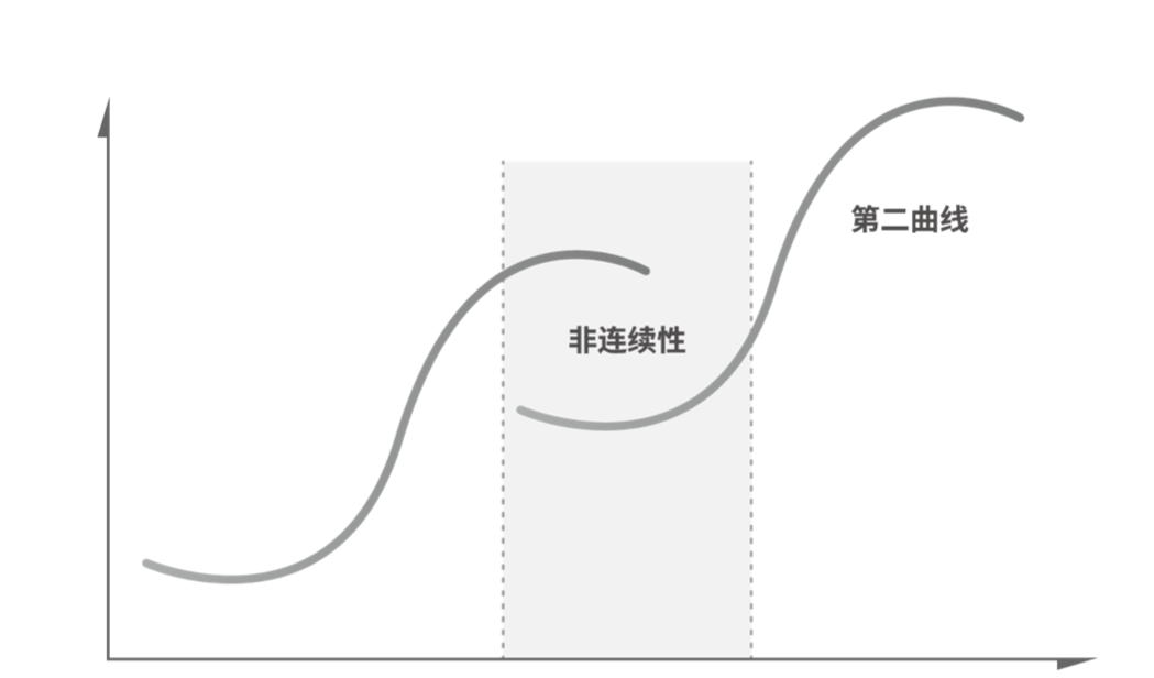 当然,一家公司要想遍历S型曲线的整个过程,要求商业环境保持相对稳定。如果在这个过程中,商业环境发生了巨大的变化,公司可能要根据新环境来进行变革。变革意味着公司的发展要经历第二条S型曲线。能实现第一曲线到第二曲线跃升的公司将获得长足的发展,不能实现这一跃升的公司将被市场淘汰。如图4-2所示。