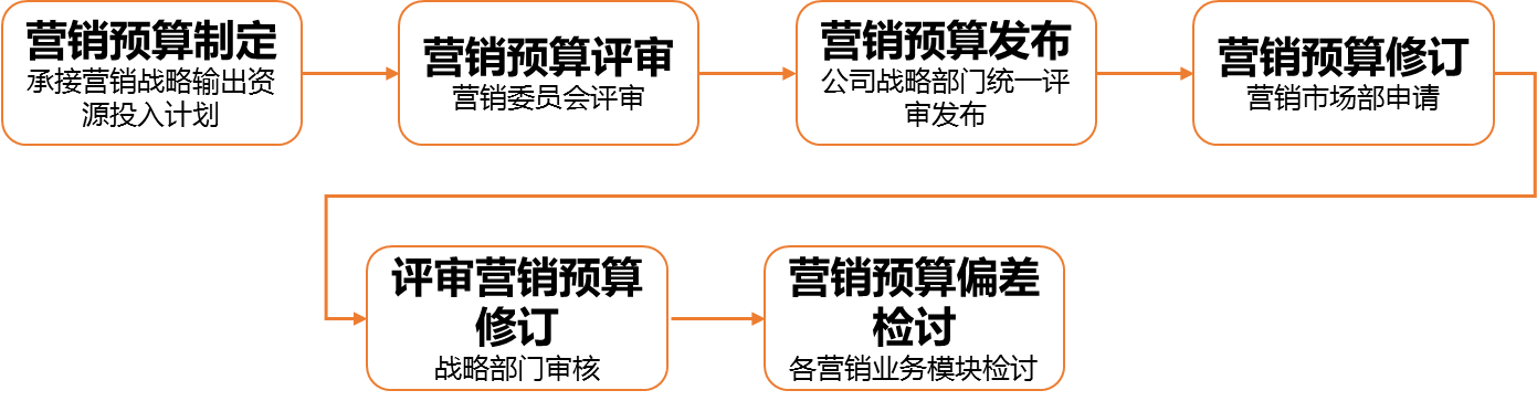 以上就是营销预算管控流程,预算在很多公司都是令人头痛的事情,很多部门将预算的制定视为战略部门的工作任务,这说明很多部门没有意识到预算的作用。本流程就是将预算同营销战略结合,将有限的资源投入到战略目标的达成中,同时对预算的支出进行过程控制,及时调整、修订,保障预算真正起作用。