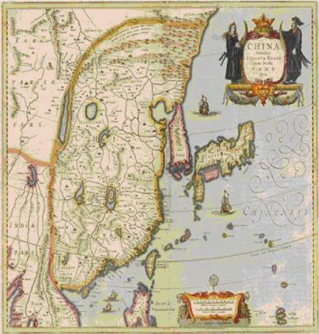 下图是17世纪西方传教士绘制的中国地图,这还是亲身丈量后的地图。现在看来,和实际差别是非常大的。