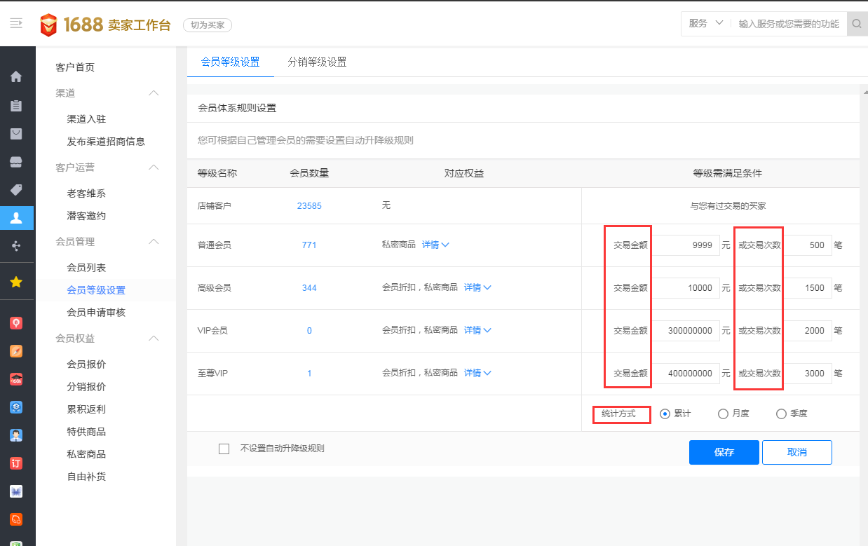 具体操作路径是:我的阿里——卖家工作台——客户——会员管理——会员等级设置。设置这个相当于设置了会员等级,也就相当于客户在店铺中消费多少则自动对应相应等级。在这里可以设置金额或者交易笔数,可以按照系统自带的等级划分,如普通会员、高级会员、VIP会员、至尊VIP。客户分层设置和等级设置类似,这个分销设置如二级分销商、三级分销商、四级分销商、五级分销商、六级分销商、七级分销商,还分为微供初级会员、微供中级会员、微供高级会员等。这里的分销等级基本上只能增加不能删除。还有一种情况,就是我们将会员等级系统做个表格或者是放到详情页中,可以用PS做。只要展示给客户,让客户对应自己的等级即可。如图9-10所示。