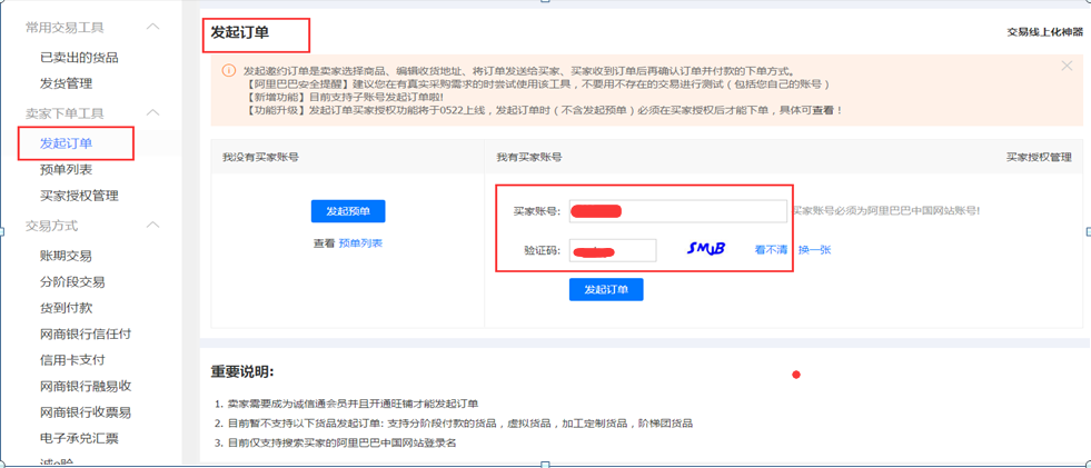 具体操作路径和方法如下:我的阿里——服务——卖家交易管理——发起订单。如图9-12所示。