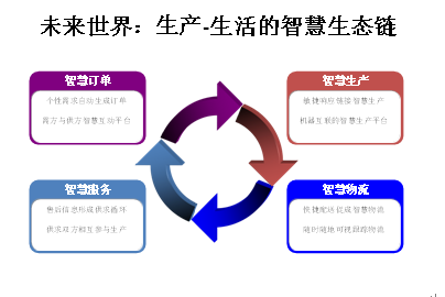 当然,智慧生产比智慧订单更加复杂,这是一个将前几次工业革命技术融合起来的过程,是一个将自动控制、机器人、互联网、物联网融合而展现出来的生产过程。目前,在德国和其他国家出现的智能工厂或数字化工厂也只是这种未来智慧生产的雏形。
