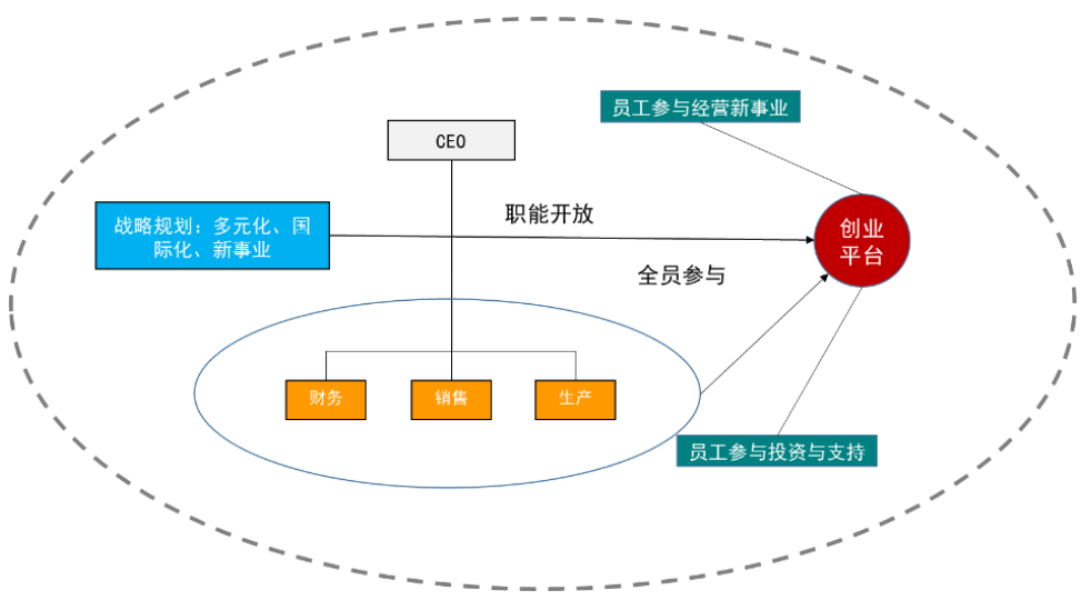 第一,企业内部的平台化包括组织的层次扁平化,把组织打造成员工实现个人价值的平台。