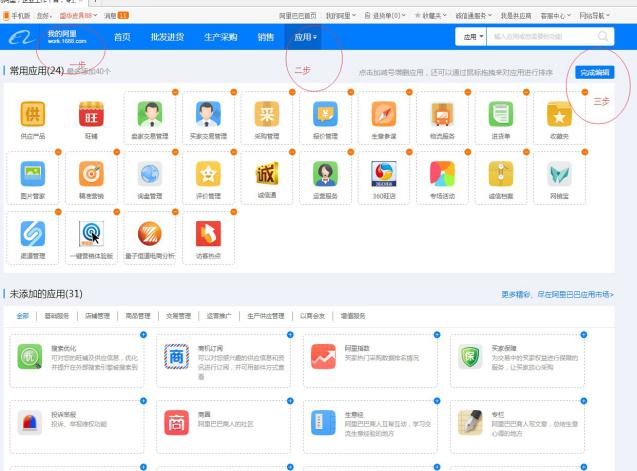 点击我的阿里——应用-——点击编辑应用,然后就可以看到精准营销这一选项。当然我们还有第二个入口,是在千牛上面的入口。
