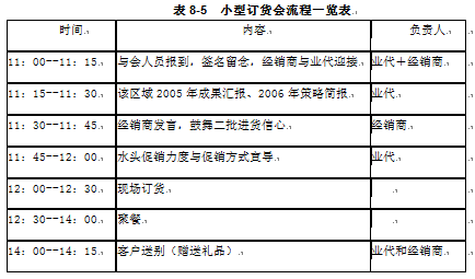 l 小型订货会流程如表8-5所示。