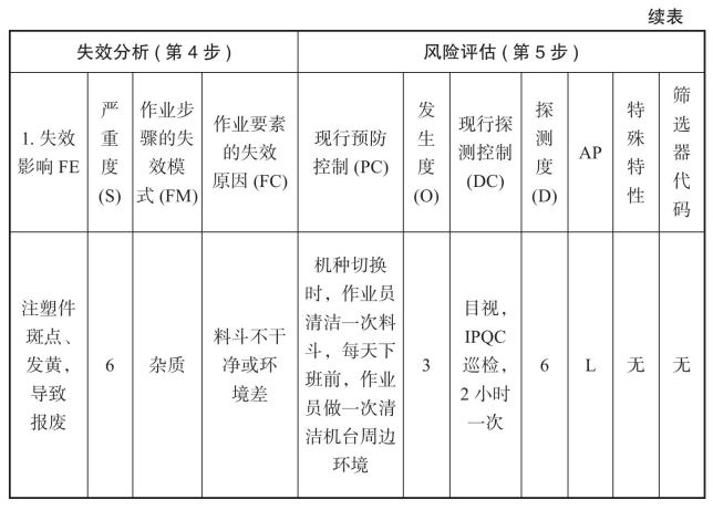 表2-10 PFMEA表格风险评估部分