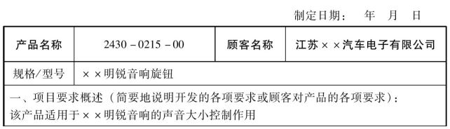 顾客主要包括使用者、代理商、经销、下游组装工厂等,在立项时一定要了解清楚客户的要求是什么。如果没有设计责任,则可以直接把客户的样品需求单当作客户呼声,因为上面有明确的功能性能要求、法律法规要求、交样要求。如果有设计责任,就必须进行市场调查,搜集相似产品成功的经验和失败的教训,以及兄弟厂商常见的异常等。如空调风扇项目加水困难、噪音大的问题等,就要纳入APQP的输入。