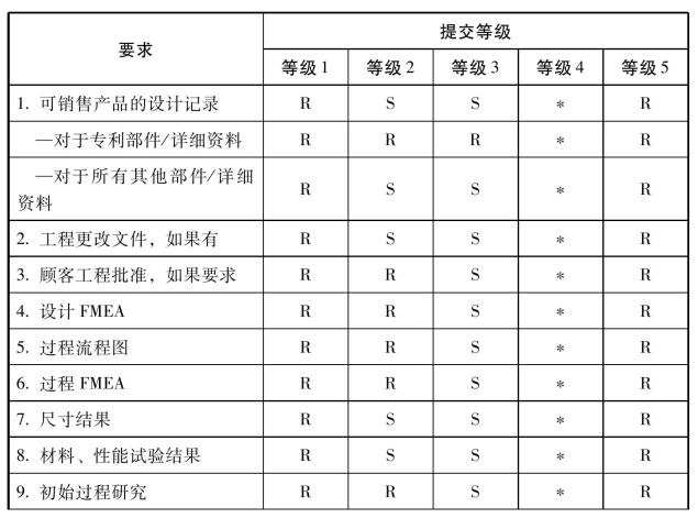 供方必须按顾客要求的等级,提交该等级规定的项目和记录: