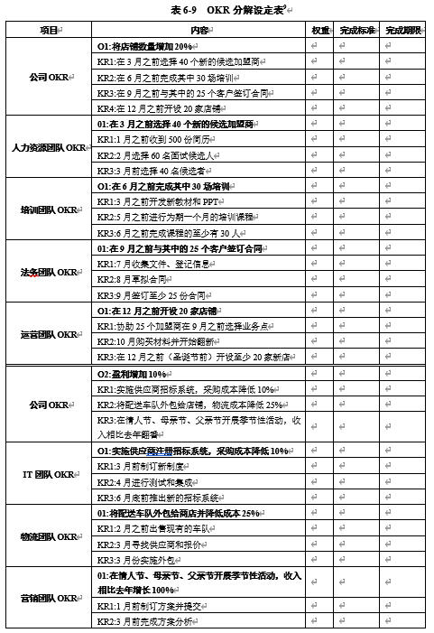 表6-9 OKR分解设定表9