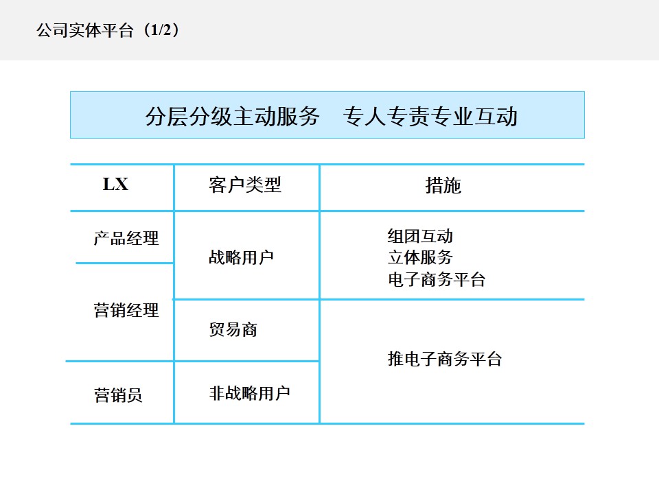 “价格公开、统一定价、款到发货”的营销政策,靠营销人员与用户的采购人员之间单线营销,根本实施不了。营销政策的差异,在产品同质化之下是否有效,完全取决于营销战略与营销模式的差异。LX需要系统梳理营销战略,尤其是进行营销模式的创新。