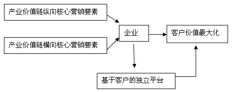 关键的营销要素如果在产业价值链的上下游环节,就是纵向价值链营销要素整合而升级营销模式;如果在与企业目标客户一致的相邻不同产业的环节上,就是横向价值链营销要素整合而升级营销模式;而平台型的营销模式是企业从产业价值链脱离出来,类似于中介机构,成为独立的跨产业价值链整合的平台营销整合模式。企业采用什么方式的营销模式创新一方面取决于企业的资源和能力,另一方面取决于所在产业价值链营销要素是在纵向上还是在横向上,核心是抓住关键要素进行组合,都以争夺客户和客户价值最大化为目的。