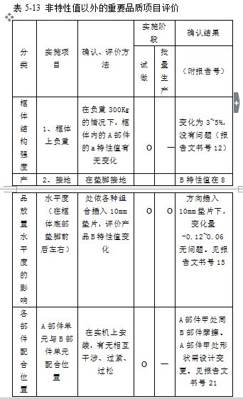 有关非特性值以外的重要品质项目评价,见表5-13。