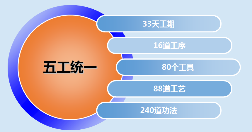 将整个装修过程拆解为16道工序,88道工艺,240道工法,每一道工序都有对应的工种,只有管理到每道工序的每个工人,将所有的工艺、工法、工具都统一规范起来,做到“五工统一”,让装修像流水线一样去运营,为实现规模化品质交付奠定强有力的基础。